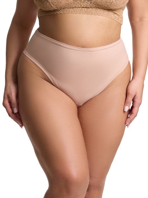 - High rise thong with a full waistband and thong back